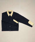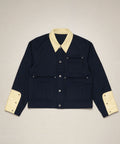 The Hustler Work Jacket combines rugged functionality with distinctive style. Built from heavy-duty oxford wool, this navy jacket delivers durability for demanding work environments. Its thoughtful design includes accessible surface pockets plus hidden compartments for secure storage. The contrasting yellow leather collar and sleeves add character while reinforcing high-wear areas. Whether you're tackling tough jobs or making a statement, this jacket pairs reliable construction with eye-catching flair that sets you apart.